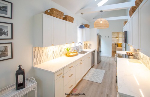 The cottage is complete with a master queen bedroom, twin daybed with trundle bed, adjoined by a large luxurious bathroom. Spacious living area with queen sleeper sofa, smart tv, and fast wifi streaming shows. Prepare meals in the galley-style kitchen where you will have all kitchen essentials, or enjoy a night out at any of the delicious restaurants on the island. Vacation comfortably with all the comforts of home in this safe and serene location.