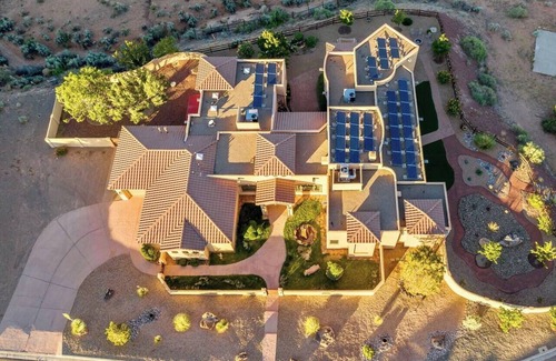 Our sun-kissed haven is powered by cutting-edge solar energy, ensuring your stay leaves the lightest of footprints on the planet. Step into a lush xeriscaped landscape, where native plants create a vibrant and water-efficient oasis around the property. Inside, a whole-house water softener and filteration system provides you with pure, refreshing hydration. The hot water is provided to each faucet in seconds, reducing additional water waste.