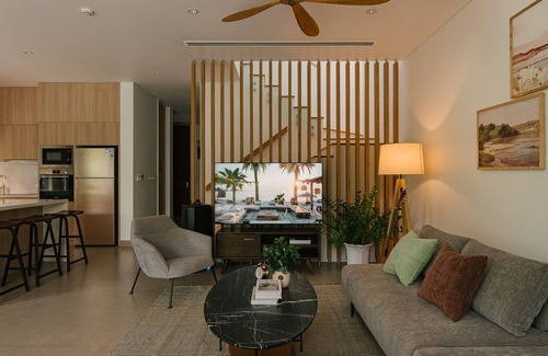 The project Hồ Tràm Sanctuary is 17 hectares wide, owns 800 meters of coastline with a winding artificial freshwater lake surrounding it, contributing to bringing a space of sea, sky, river water, fresh, peaceful and inspiring. Standing out among the villas in the resort, our 290sqm villa is carefully invested with all high-end and complete equipments, asthetic design to give you a comprehensive experience, enjoying resort amenities like in your own home.