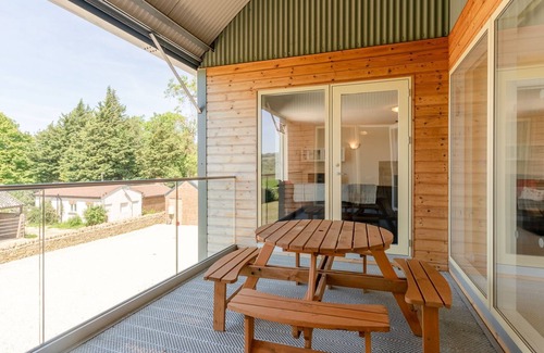 This reverse-living holiday home has two double bedrooms and a family bathroom on the ground floor, plus a handy utility room. On the first floor is the kitchen-dining room - with access to the covered balcony through French windows - a living room with a woodburning stove, and two spacious ensuite double bedrooms (each can be made up as a super-king size double or twin). All the rooms have floor-to-ceiling windows, making this a light and bright retreat with a lovely view from every room. The bedroom flexibility, space and modern conveniences make this a great base for walkers, an extended family, a wedding group or a friends' get-together.