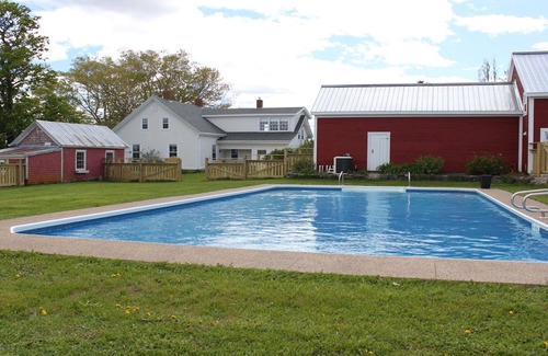 The main farmhouse is 2 story, and has 5 bedroom,2 bathrooms and easily sleeps 10.It has a fully equipped pine kitchen. There is a shaded front porch that has views of the Minas Basin and Wolfville in the distance,and a sheltered side deck that is a perfect place for your morning coffee.
