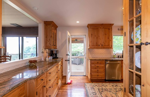 The modern custom kitchen has a 4 burner gas range, granite counters, stainless steel appliances, bar with an ice maker and mini fridge. And every coffee lover will be happy to know that we have both a Keurig style and drip coffeemaker provided for you!