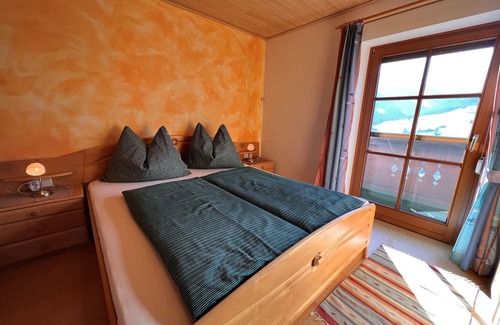 2-room apartment 45 m2 on 1st floor. Bright, cosy furnishings: living/sleeping room with 1 double sofabed, dining nook and satellite TV. 1 room with 1 x 2 bunk beds, 1 double bed. Kitchen (oven, dishwasher, 4 ceramic glass hob hotplates, toaster, kettle, electric coffee machine, raclette grill). Bath/WC. Heating. Balcony. Panoramic view of the mountains. Facilities: Internet (WiFi, free). Please note: non-smokers only. Smoke alarm. Bed layout is flexible. There are more sleeping options available than the maximum number of people allowed which may, however, not be exceeded. 50622-001304-2020
