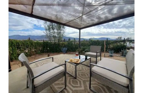 This memorable place is anything but ordinary. Eco-friendly repurposed shipping containers converted into two cozy casitas. Each casita can accommodate two people. Each casita is furnished with a double bed, small couch , mini kitchenette, en suite bathroom & your own private outdoor deck! You & your family or friends can rent out both casitas , and enjoy the entire property which includes an outdoor gazebo, seating areas, open fire pit. This property is in the heart of Valle de Guadalupe wine country. Minutes away from restaurants, wineries, shopping, grocery stores, etc.