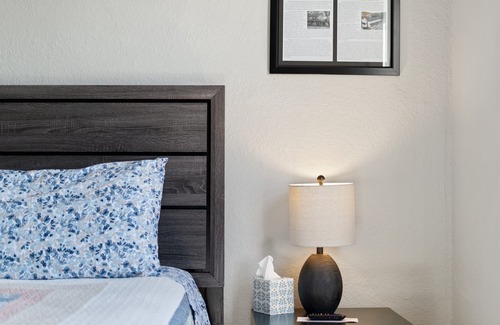 The Tellico Plains Inn, originally established in 1916, is in the heart of Tellico Plains and the start of the Cherohala Skyway. The Inn was rehabbed in 2023 with modern flare but staying true to the character of a 100+ year old Inn. It is within walking distance to the local shops and minutes away from the Cherokee National Forest (Bald River Falls, Indian Boundary, trout fishing, hiking, kayaking). The Byrum Room has a king bed, console/desk with stools, mini fridge, 55" smart TV, and the room also has its own ductless heating and cooling unit. The luxurious ensuite, full bathroom boasts a tub/shower combination with glass doors and tile walls.