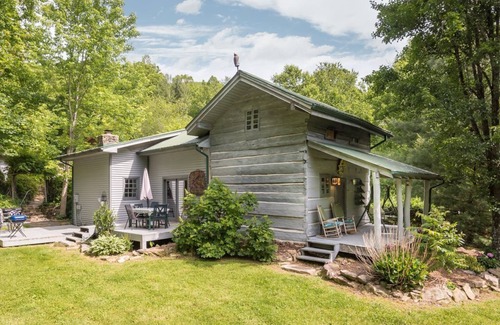 Welcome to "Pioneer Creek" Located near Cataloochi Ski Resort/Ranch in the heart of Maggie Valley. This Beautiful 1850's authentic Appalachian log cabin sits on a lush, walkable acre, filled with the sounds of a rushing, cascading creek. The creek wraps around the property perimeter, bringing a peaceful and melodic serenity, while you rock on the covered front porch. Unwind under the stars on the porches or enjoy story time around the fire pit. Enjoy this Civil War era cabin with all the modern comforts of home, such as a fully equipped large kitchen, flat screen TVs in every room and Charter Spectrum internet Wi-Fi. This property is located only minutes from the ski lifts and downtown Maggie Valley. It is close to the Blue Ridge Parkway, Waynesville and Asheville. Everyone is welcome, kids and pets included!