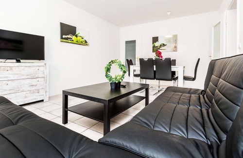 HÖ01 large apartment with dryer and washing machine is located in Monheim. HÖ01 large apartment with dryer and washing machine provides accommodation, featuring TV, Kitchen, Laundry, among other amenities. This Apartment features TV, Kitchen, Laundry, to make your stay a comfortable one.