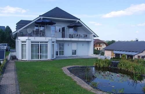 Exclusive apartment in the health resort Morbach / Hunsrück and only a few kilometers to the Moselle, with a view and in a quiet south-facing slope. Newly renovated since 06/2013. The apartment is located in a family house and is bright and very lovingly and friendly. It can accommodate up to four people. It has a large bedroom with double bed, a living room with a very comfortable sofa bed, a beautiful kitchen and a bright and friendly shower room. The apartment was completely renovated in 2013 and furnished with new furniture. Bath towels and bed linen are provided and included in the price. The balcony is equipped with garden furniture and a large parasol.