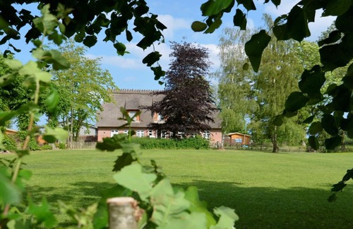 Look forward to a very special holiday apartment on a former farm in a secluded location. The very spacious and idyllic property is only 2 kilometers from the Baltic Sea. It consists of a charming farmhouse and a unique barn. The buildings are surrounded by many gardens that invite you to relax and create the feeling of being connected to nature. The 110 square meter holiday apartment is located in the farmhouse, which has been completely renovated and has a beautiful thatched roof. The apartment "Kos" was furnished in Norwegian style with great attention to detail and offers plenty of space to slow down. The apartment also impresses with a modern kitchen for cooking together, a sauna for relaxation and cozy bedrooms. Just see for yourself, we look forward to seeing you!
