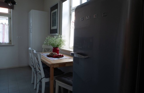 Relax in the garden (enjoy the outdoor furniture!) of this apartment. As for the great indoors, you can come inside and enjoy the free WiFi and TV.