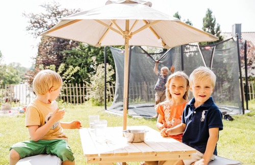 There is a bus stop directly in front of the house with connections to Wangen and Tettnang. In the village of Neukirch, a 4-minute drive (1.2 km) away, you will find a supermarket, a restaurant and cash terminals, and a bakery can be found 6 km or a 7-minute drive away in Laimnau. In Wangen, you will also find many shops, cafés, restaurants and pharmacies. The area offers numerous great hiking and cycling opportunities through scenic landscapes, like the popular hiking route “Hasenpfad”. The closest beaches, where you can swim in the clear blue water of Lake Constance with lovely views of the Swiss Alps in the background, are 20-25km away. The pretty centre of Friedrichshafen, a 30-minute drive (20 km) from Neukirch, invites you to visit the Zeppelin museum, stroll about the lake promenades and explore its beaches.