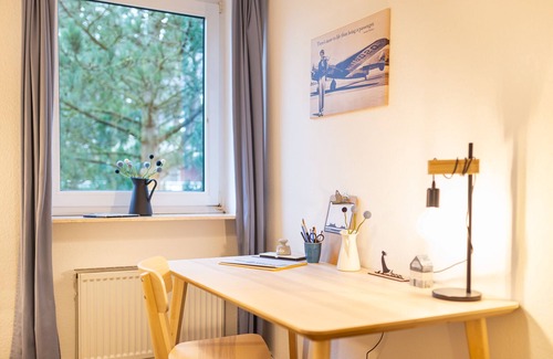 The holiday apartment "Lürßen" is located in a quiet street in Wittdün on the island Amrum. The is a beautiful view from the balcony over to a small park. This apartment is available up to 4 persons and your dog is welcome as well. There are two sleeping room in this apartment. One is equipped with a double bed and in the second one you find two separate beds. The kitchen is in an extra room and has also an extra table. The guests of this apartment have a free entrance to the the local gym & sauna “Eilun Fit”.