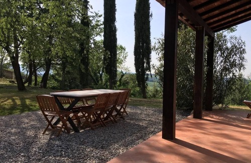 The house, on the top of Poggio Fontana hill, is sourronded by vines andwoodland and has its own large garden.