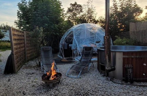 ♡ Our bubble offers a cosy 10m² of space for two people and is equipped with a cosy double bed with warm bed linen and a small table with two chairs. A fire bowl and seating in the outdoor area make for relaxing evenings. A charcoal barbecue can be provided on request (charcoal not included).