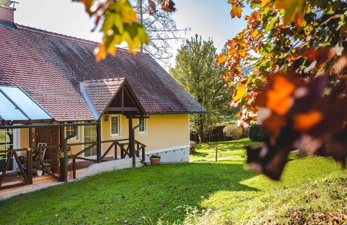 The terrace is roof covered and equipped with tables and chairs for 3 people. Deckchairs and a barbecue as well as a bigger terrace on the sunny side of the house are also available. The house lies totally in green surroundings and sometimes the Lipizzaner horses can be seen in the neighbouring meadows.