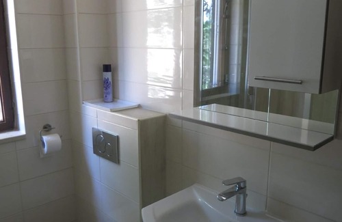 The apartment of around 60m² can accommodate four to six people. It consists of two bedrooms each with a double bed (180cm wide), an armchair or pull-out bed for a further guest, as well as a fully-equipped bathroom with a shower, WC, washbasin and cupboard with a mirror, and a kitchen with a dining space.
