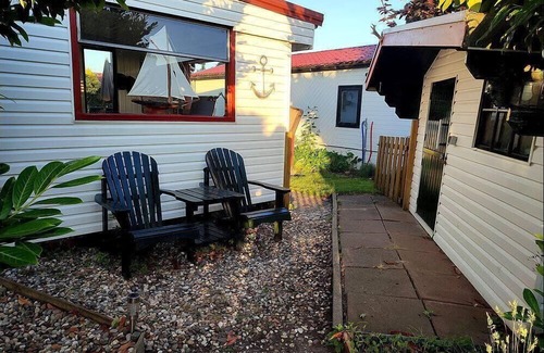 The small, only this year (2022) renovated mobile home het kleine Hemeltje on a small holiday island surrounded by water (lake for swimming, boating, relaxing on the lawn) where the family and the dog feel comfortable. The Ijsselmeer with its pebble and fine sandy beaches is approx. 500m away. Swimming, surfing, kite surfing, fishing, cycling, shopping, good restaurants make your holiday a pleasure. Attractions. Beach bar on a fine sandy beach about 5 km away. Large antique and flea market within walking distance on Sundays in summer. Sights, museums, for young and old in the immediate vicinity. Beautiful old Dutch towns with charming architecture just a few minutes away by car, e.g. Medemblik - 5 km - Hoorn 20 km - Enkuizen - 25 km - or even Amsterdam 60 km. For children there is a large private playground with kiosk within walking distance of our small children's playground on the complex, free admission for Vislust guests. Terrace and many highlights such as trampolines, large slides, wooden railway, swings and much more, which can be used free of charge by our younger guests. Three kilometres away is an indoor swimming pool with water slide - Indore playground in Medemblik - for children up to 16 years approx. 5 km away. The nearest harbour is in Medemblik - with its historic railway station and dyke with jetty for boat trips. In Enkuizen there is another large Indore swimming pool directly adjacent to a fine sandy beach by the sea. Spokjesland, also in Enkuizen, for children up to the age of 12, is a popular attraction for young families or grandparents with grandchildren. Golf course in the immediate vicinity Our manager will be happy to help you plan day trips, e.g. to the island of Texel or the North Sea.