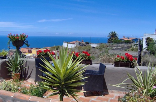 However, the real highlight of the over 218-year-old house with its typical Canarian courtyard and staircases is the shared roof terrace. Here you can relax on one of the sun loungers or sit in the covered lounge area and enjoy the magnificent view of the Atlantic Ocean and the mountains. The accommodation is the ideal base for exploring the island on mountain bike or hiking tours.
