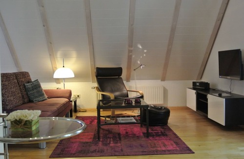 Spacious living area and double couch, cable TV, stereo, direct dial telephone, W-LAN.