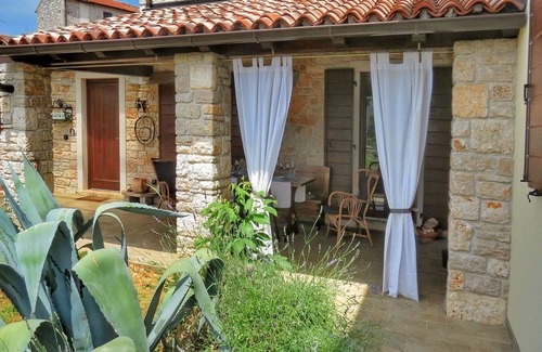 The typical Istrian stone house Casa Le Finide is quietly situated in Bale and yet within walking distance of the medieval old town. On the ground floor of the 140 m² house there is a comfortable living-dining area with an open, very well-equipped kitchen, a bedroom with 2 single beds and a bathroom with shower/WC. From the kitchen and the living room there is access to the covered, secluded terrace with barbecue.