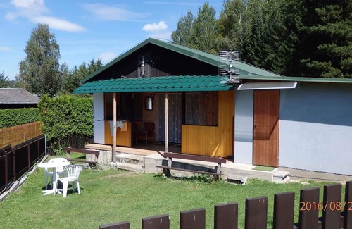 The standig individually holiday home, built in 1988 and renovated in 2018 is in the typical country style furnished. The property is located in a holiday complex, on the outskirts. The domicile is also popular because of the view over woods from the property and the quiet and sunny location at the edge of the woods and at the water. For use are available: sunbathing area, parasol, grill possibility, terrace, garden furniture and fire place. The landlord lives in a separate building 500 m from the property. Canoe. Storage room for bicycles and with drying system. Property has 2 separate entrances.Holiday resortinternet (WLAN). LocationBechyně, 350 m above sea level. The holiday home is located in a holiday complex, on a 200 sqm, closed garden plot with meadow, flowers, bushes and trees, limited by a fence. From the plot of the river Luznice is achievable. The access goes via a side road (rubble or gravel, length 100 m). Parking lot (for 3 cars) on the property. SpecialElectrical Bioheizung. Facilities: internet access (WLAN), Wii, iron and washing machine. TV reception takes place via antenna. TV channels only in local language. LeisureBechyně 6 km. Sports arena. Dogsallowed, CZK 100.00/pet per day. DistancesShopping opportunity 500 m, restaurant 100 m, town center 1000 m. indoor swimming pool, cinema each 19 km. railway station, sauna, discotheque, bank each 6 km in Bechyne. Purchase 500 m from the house (only open on Mon, Mon and Fri). Restaurant is shot in the winter. Spa Bechyne with spa services 6 km and shopping. Orlik Castle 25 km, Tabor Castle 19 km, Bechyne Castle 6 km, Hluboka Castle 30 km, Hnevkovice Dam 20 km, Chynov Cave 25 km. Fishing without a license is only possible in the pond in Milevsko, about 19 km from the object. Cost about 15 CZK per hour. In other places, the appropriate fishing conditions are observed.In summer: river Lužnice 100 m in Dobronice (beach with meadow). Bechyne: tennis 6 km and golf, mini golf each 7 km. fishing, boat rental each 50 m in Dobronice. horse riding in Stare Sedlo 4 km. (The beautiful bathing is located above the weir of the Luznice river). The owner is ready to help with doing things and buying fishing licenses.In the winter: Ski area 60 km. ice skating in 19 km. Skiegebiet Lipno nad Vltavou with trails 70 km away. Skiing in Moninec 35 km away. DivisionHoliday home, 1 floor, 3 rooms (including 2 bed rooms), 42 sqm, in total 6 beds. Smoking is prohibited in the property. RoomThe entrance in your holiday home is covered and at ground level and leads over the terrace and the 42 sqm balcony with wardrobe, sitting area and doors to all rooms. Input from the covered terrace. Living room (18 sqm) with 1 double bed, sitting area, TV, dining area (6 seats) and access to the terrace (6 sqm, covered, garden furniture, 1 table, 2 chairs, parasol). Bedroom (22 sqm) with 1 double bed, 2 single beds, sitting area and access to the terrace (6 sqm, covered, garden furniture, 1 table, 4 chairs, parasol). Cooking nook in the living room (4 sqm) with TV, dining area (4 seats), electric stove (4 plates), oven, extractor hood, fridge (120 l, icebox), microwave, electric kettle and access to the terrace. Cooking nook In the anteroom (6 sqm) with TV, dining area (2 seats), electric stove (2 plates), oven, fridge (120 l, icebox), microwave, coffee machine, electric kettle, washing machine and access to the terrace. Bathroom (6 sqm) with shower, 1 sink, WC and window. Bathroom (12 sqm) with washing machine, shower, 1 sink, WC and window. Bedroom. Terms of lease and pricesIncluded in the priceinternet access, parking place, water, Wireless Internet access. Side costs-Costs on the spot:/Obligatory:electricity 0,30 € per kilowatt hour based on usage. heating 0,30 € per kilowatt hour based on usage. final cleaning to be carried out individually per person per stay. bed linen to bring along. local tax by local tariff.Deposit:EUR 100,-/object
