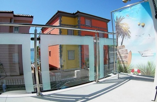 We warmly welcome you in Villa Marica with wellness area (sauna & whirlpool), directly on the family friendly beach with marina of Crikvenica.Our house offers WiFi - Free and a spacious terrace of over 150m2 which is furnished as a lounge with associated barbecue area.Here the entire house with all 10 studios is rented!The studios are equipped as follows:Studio 1 - combined living room / bedroom with bunk bed for 3 persons, kitchenette and separate bathroomStudio 2 - combined living room / bedroom with double bed for 2 persons, kitchenette and separate bathroomStudio 3 - combined living room / bedroom with double bed for 2 persons, kitchenette and separate bathroomStudio 4 - combined living room / bedroom with double bed and sofa bed for 4 persons, kitchenette and separate bathroomStudio 5 - combined living room / bedroom with double bed and bunk bed for a total of 5 persons, kitchenette and separate bathroomStudio 6 - combined living / sleeping area with double bed for 2 persons, kitchenette and separate bathroomStudio 7 - combined living room / bedroom with two double beds for a total of 4 persons, kitchenette and separate bathroomStudio 8 - combined living room / bedroom with double bed and sofa bed for a total of 4 persons, kitchenette and separate bathroomStudio 9 - combined living room / bedroom with two double beds for a total of 4 persons, kitchenette and separate bathroomStudio 10 - combined living room / bedroom with two double beds for a total of 4 persons, kitchenette and separate bathroomOn the ground floor is the large lounge area, which is available to you as a group for joint activities.Information about Villa Marica:- beach (across the street)- Access to the large seating terrace lounge with TV and BBQ area- Wellness with sauna and whirlpool (underfloor heating)- bed linen- kitchenette- Crockery, cutlery, coffee maker- air conditioning (extra)- Satellite TV, LCD TV- bathroom (toilet, shower, towels)- Free internet access (Wi-Fi)- Parking (in front of the house - public area)- German speaking careBasically, the sauna can be used freely. Please note that the sauna is switched on by the local contact person and therefore the usage has to be registered early. Please inform the contact person at an early stage so that the use can be guaranteed at the desired time.Short descriptionOther : Non-smoking houseShort description 1Number of kitchens : 10SurroundingNearby sports facilities : Basketball, Bike tours, Canoeing, Diving, Fishing, Football area, Horse stalls (guests), Mountainbiking, Rafting, Riding possibilities, Rowing, Sailing, Sport center, Surfing, Tennis, Water skiingRental Facilities : Boat rental serviceGarden and outdoorGarden facilities : GrillOn-site leisure facilities : Sauna, Whirlpool