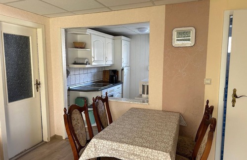 The holiday home has two cosy, darkened bedrooms that invite you to relax after an eventful day. The well-equipped kitchen with ceramic hob, filter coffee machine and kettle and the modern bathroom with shower provide additional comfort. Thanks to the solar-assisted heating system, you can enjoy a pleasant indoor climate even in the cooler months.