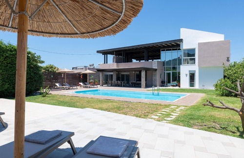 Marane Deluxe House is a beautiful villa set in Ialysos. It offers a fantastic private swimming pool and a beautiful landscape. The House is set in a convenient position which is near to Rhodes city. It accommodates up to 6 guests and is the perfect family home, set in the midst of a serene natural environment.