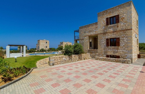 The luxurious newly built Emerald villa is situated west of the town Chania, at a distance of approximately 22 kilometers, in the Rapaniana area. The villa,built of stone, is literally on the sea shore and have direct access to the beach. Important Notice: Check-in is after 16.00Check out is 11:00 latest. Check in and check out can be made without a person to person contact (upon request)Important Notice:-In case you travel with your pet, we have a refundable deposit of 300 euros for any damages