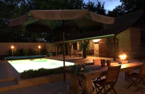 Large terraces with pool and covered pool lounge for shade and summer lunches outside. Sunbeds and two outdoor tables. Large outdoor table with parasol for 8 people next to nice barbecue or outdoor fireplace. Large grassed garden (3000 m2) around the house, plenty of space for children to play, totally private with ample parking for cars and gate to the road. Walk directly into the fields for a beautiful sunset (running, mountain bike).