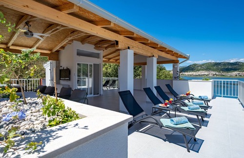 House can accommodate 8 guests. Beds are situated in 4 sleeping rooms, within 150m2. Guests can use a private terrace to enjoy the warm summer evenings. The house offers the sea view. For full enjoyment and relaxation there is a private barbecue for this accommodation guests only.