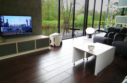 to rent this luxurious and spacious recreation houseboat for 4 people located in the Weerribben-Wieden just a few kilometers from the tourist center from Giethoorn in the National Park with uninterrupted views of the Canal Cornelis. Recreational water villa of about 95 m2 with a modern design is an example of Dutch Design. Large glass walls offer views of the surrounding nature with a great variety of birds, deer and rare species. The sheltered garden at the quay has several lounge areas and a private harbor. In the off-season, and in the evenings, it is an oasis of calm and space. In high season you Siehen a variety of passing boats from Giethoorn to one of the many lakes; Excursion boats and barges and canoes, or local boats for the transport of cane and cattle. A unique location to relax and a good starting point to explore the various attractions of Overijssel, Giethoorn and the Weerribben-Wieden National Park. Water Villa Intermezzo combines living on the water with the protection of the country, a minimalist Dutch Design with absolute luxury in an ever-changing landscape of wetlands.