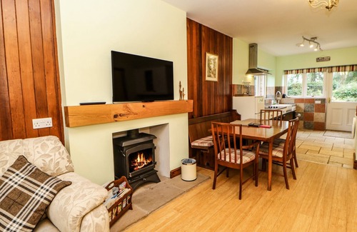 Amenities: Biomass central heating with woodburner. Electric oven and ceramic hob, microwave, fridge/freezer, washer/dryer, TV with Freeview, WiFi. Fuel, power and starter pack for woodburner inc. in rent. Bed linen and towels inc. in rent. Cot and highchair. Off road parking for 3 cars. Private patio with furniture. Access to 3 acres of garden. Two well-behaved dogs welcome. Sorry, no smoking. Shop and pub 1 mile. Note: Pond in shared garden, care should be taken. Note: Kitchen has fully accessible height-adjustable work surfaces. Note: Visit England 4 Star Gold and National Accessible Scheme rates of M2, H2 and V1. Fully suitable for those with limited mobility and wheelchair users as well as those with hearing and visual problems. Please contact owner for more information. Note: Check-in time 4pm.