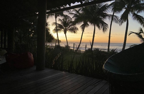 A large upstairs double bedroom with bath, separate shower and a balcony. All with hammocks and the balcony too!