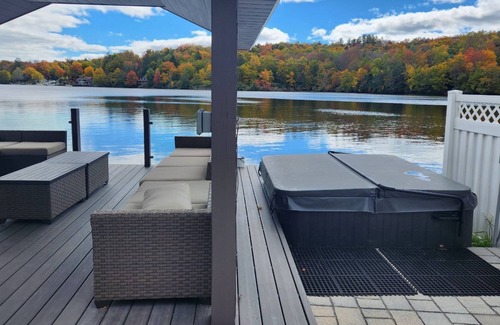 Home king luxury, waterfront hot tub, family , indoor pool, private beach is located in Kauneonga Lake. Home king luxury, waterfront hot tub, family , indoor pool, private beach provides accommodation, featuring Private Pool, Child Friendly, Kitchen, among other amenities. This Villa features Private Pool, Child Friendly, Kitchen, to make your stay a comfortable one.