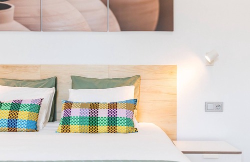 This cosy Bed & Breakfast with 10 renovated rooms is ideal for both families and business travellers. This room has a queen size bed, private terrace, work area with desk, private bathroom and many common areas where you can relax during your stay. It has a terrace with chill out area as a renovated space with outdoor furniture, lounge, fully equipped communal kitchen and shared outdoor pool heated through efficient equipment and renewable energy. All this in a more sustainable space, contributing to the reduction of the carbon footprint, in a building that has photovoltaic panels with energy accumulation, using the latest generation batteries.