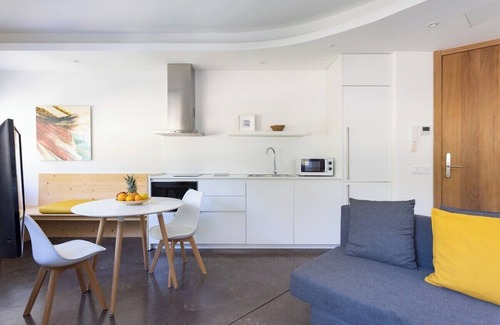 This fantastic studio is ideal for families, couples and business trips, as it has capacity for 3 people and Fibre Wifi Internet. It is very cosy and bright, with a pleasant sleeping area with a king size bed made up of two single beds, a living-dining room with a comfortable sofa-bed and Smart TV, which connects to the equipped and functional kitchen of the flat. With a large bathroom, Wifi fibre internet, air conditioning and lift, this property has all the comforts. The large shared roof terrace on the top floor of the building has areas where you can sunbathe, have lunch and relax in the open air, while contemplating the breathtaking views of Anaga.
