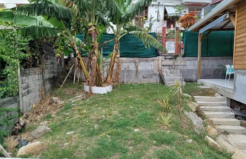 Enjoy the beautiful outdoor space featuring a private terrace that offers a wonderful view of the lush garden. The spacious terrace is perfect for relaxing on sun loungers or enjoying al fresco dining at the grill. This bungalow is situated in a tranquil area, ensuring a peaceful stay as you explore Schoelcher.