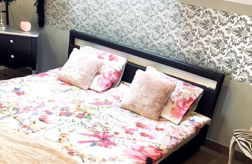 The apartment has a comfortable bedroom with a double bed. The bathroom is fitted with a shower and a toilet.
