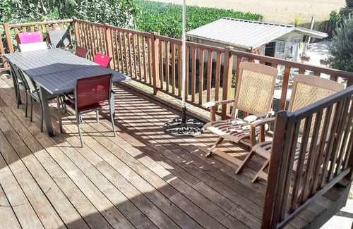 Inside, you will appreciate the large living area that combines comfort and conviviality. The living room is bright, with a comfortable sofa and a fireplace, creating a warm atmosphere. A spacious dining area and a fully equipped kitchen allow you to prepare delicious meals to share with your loved ones.