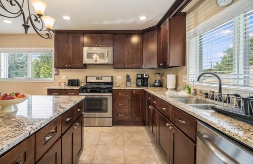 2300 SF renovated unit in the South suburbs, and only 30 minutes south of Downtown Chicago! This property has 4 bedrooms, & 2 bathrooms. Master bedroom has a KING, 2 bedrooms have a Queen and 1 bedroom has a Queen en-suite! The living room has room for 1 air mattress (Total of 5 beds). Plenty of Kitchen utensils, all you need in a kitchen, including cooking spices and oils! Children friendly & lots of technology!