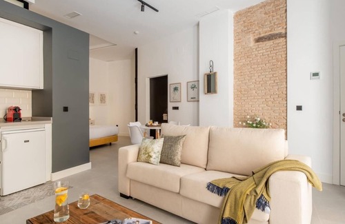 Flat in a recently built building with high quality materials, designer furniture and access to a spectacular communal terrace with views of the Cathedral. Located in the heart of Seville, just a few meters from the Cathedral and Giralda, City Hall and the rest of the monuments of the city. The flat, fully equipped, with 2 balconies consists of 1 bedroom with queen size bed, living-dining room, kitchen and beautiful bathroom. You will be able to access the communal terrace on the top floor.