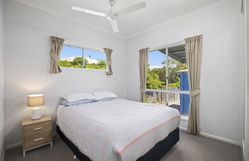This teal-coloured bungalow includes FREE WIFI, BBQ, AirCon and washing machine.