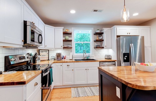 Whether traveling with your family, a group of friends, whatever the group and the occasion, this is your perfect vacation destination. This modernized mountain cottage creates a welcoming vibe both inside and out. Meticulously renovated and updated, incorporating modern/stylish elements, enmeshed with a more traditional cottage home, Hoopers Creek Cottage affords a mountain privacy with luxurious appointments. Come relax in the cradle of the Blue Ridge Mountains.