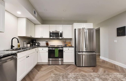 Welcome to your home away from home in our brand new, January 2024 apartment. The two king beds are perfect for couples or groups that love to spread out. Walkable to everything the North Side has to offer, but designed to stay in, our place features a fully equipped kitchen, work from home desk, a 65" TV + TVs in each bedroom, dining space, a Joybird couch, and lots more! Register your vehicle for free street parking, or leave your vehicle at home and walk or Uber to everywhere from here!