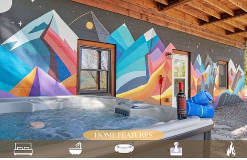 You won't want to spend all of your time indoors, as the real reason for your trip is likely the fresh mountain air! Just outside the basement door, you will enjoy a 6 person covered Hot Tub in front of a custom mural by a local artist and the breathtaking 180-degree views of the Plot Balsam Range. S'mores, ghost stories and a nice glass of wine with your family surrounding the outdoor Firepit with Adirondack chairs. The morning views from the deck are perfect to start your day with a fresh cup of coffee while relaxing on the outdoor couches. For dinner, you will be able to play grillmaster with a gas grill and outdoor dining table to enjoy your feast. Don't forget your furry friends, as we are pet friendly and have a small fenced in yard!