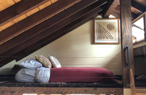 Hi, we're your hosts, Dave and Peetz. We moved to Petaluma in the late 90's, excited that we found a comfortable, vibrant town that has involved community spirit. We're music-oriented and enjoy socializing with friends, traveling, takings walks, gardening, cooking, and wandering about town to see what's going on. As our guest, you are welcome to enjoy our shared space to relax on our small property, and trust that you will have plenty of privacy. We look forward to meeting you and assisting you to ensure that your stay in the Petaluma area is everything you hope for. Our studio has a very comfortable pull-out queen sofa, a twin pull-out chair (both on the main floor) and a double bed in the loft. Our outdoor space has seating for 4 in two different spaces, a hot tub, an outdoor shower, and gas grill all situated under our two large redwood trees.