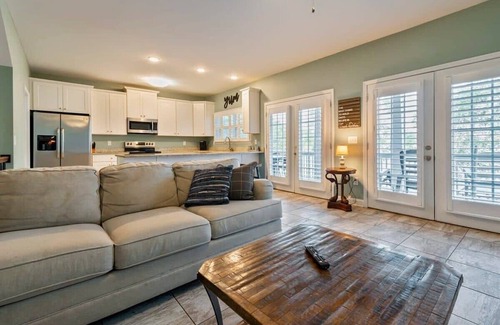 AMENITIES • 6 bedrooms, 3 bathrooms • WiFi • Cable television • Sleeper sofa • Refrigerator with ice maker; dishwasher; pots, pans and kitchen tools • Washer and dryer • Linens and towels • Private boat slip • Gas grill RESTRICTIONS Maximum 16 guests. No smoking. No pets.