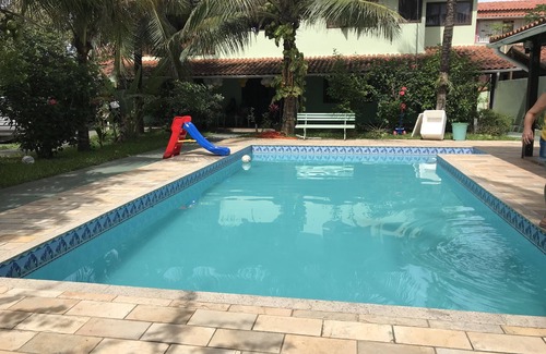 Enjoy a condominium house with 24 hour security. There are 5 bedrooms, 2 suites, swimming pool, shower, barbecue and wood stove. It has a large living room with cable tv and wifi internet, dining room, kitchen with freezer and microwave.