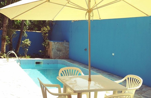 House with 3 bedrooms and 2 en suite, 1 air-conditioned rooms and pool, located 100 meters from the beach, party lounge with pizza oven barbecue.